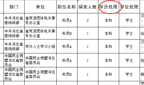 答:學(xué)歷高于職位要求的人員可以報考該職位。在河北公務(wù)員考試職位表中的學(xué)歷要求,指的是該職位的最低學(xué)歷要求。例如,職位要求“本科”,是指本科及其以上學(xué)歷人員都可報考。報考職位有學(xué)位要求的,考生應(yīng)當(dāng)具有相應(yīng)學(xué)位或更高學(xué)位。