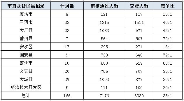 六、廊坊各區(qū)縣招錄報(bào)名情況