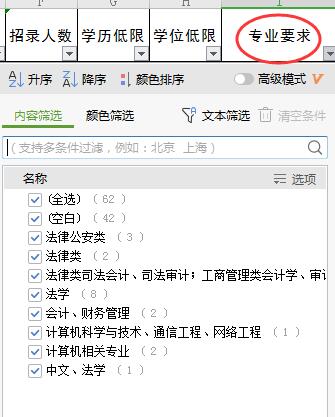 在廊坊地區(qū)招錄的62個崗位中,有42個崗位是不限專業(yè),占廊坊總職位數(shù)的68%。僅有20個職位要求有專業(yè)限制,主要有法律類、計(jì)算機(jī)類和會計(jì)學(xué)等,詳情如下: