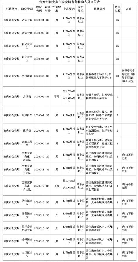 1、公開招聘安慶市公安局警務(wù)輔助人員崗位表
