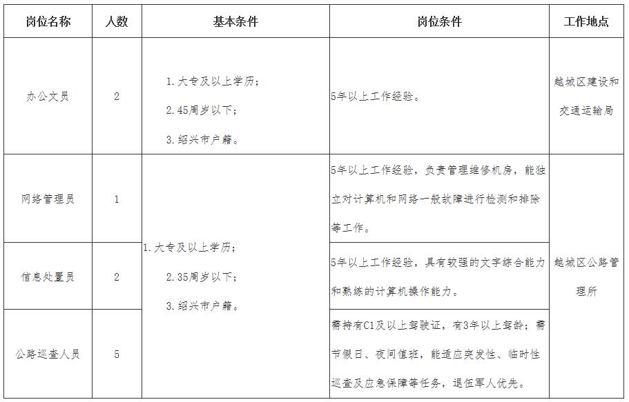 紹興市越城區(qū)建設(shè)和交通運(yùn)輸局編外用工招聘公告