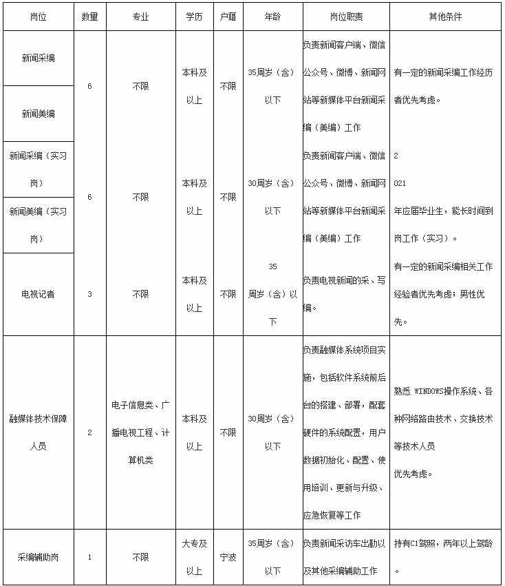 寧波市江北區(qū)全媒體中心面向社會公開招聘編外工作人員若干?,F(xiàn)就有關(guān)事項(xiàng)公告如下: