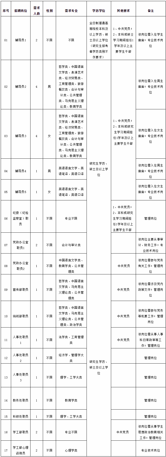 3、輔導員崗位經學校領導集體研究決定分配具體院系崗位。
